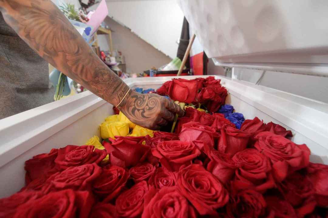 Las rosas son el paisaje principal de los comercios. Apoyadas en baldes, mesas y estanterías están listas para ser llevadas.