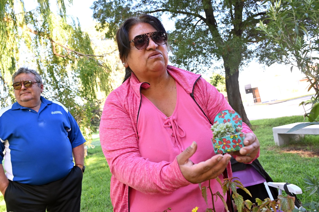 Laura, emprendedora de plantas, participa hace nueve años en la feria con cactus, suculentas y aromáticas adaptadas al clima local. Foto: Marcelo Ochoa.
