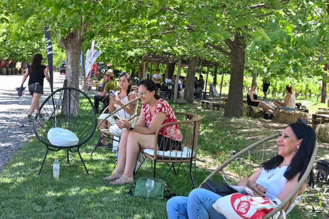 Relax, disfrute. Mucho calor y los foodtrucks que invitan a comer en plena sombra, entre los viñedos y la bodega, en el Festival Yo Como edición 2025, en la bodega Humberto Canale, en Roca.