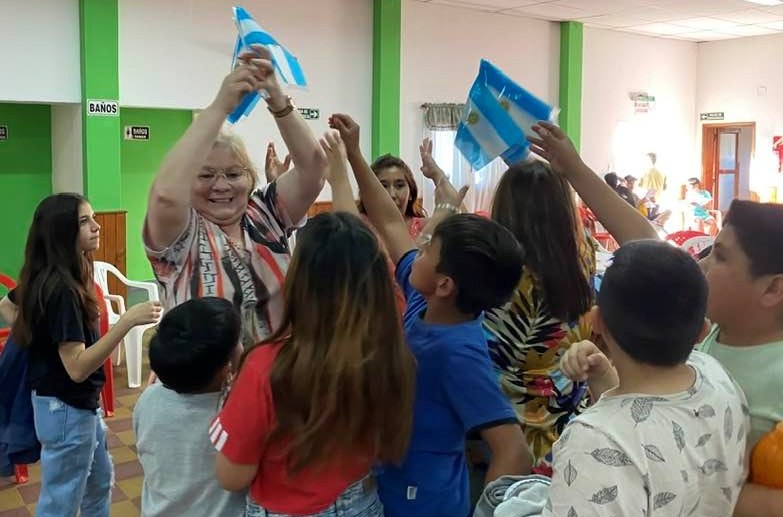 La fiebre mundialista continúa en aumento en Los Menucos. Bajo el lema “palpitando el mundial”, este jueves, niñas y niños recibieron como regalo y participaron de sorteos de camisetas de la Selección Argentina, vuvuzelas, bocinas, banderas, vinchas, gorras y gorritos marineros, figuritas, pelucas, juegos y pinturitas, entre otros objetos con los colores celeste y blanco.