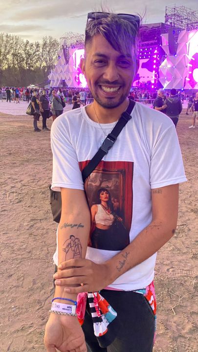 «Ella a mi me salvo en un montón de aspectos, ella inconscientemente salva a la gente, sin darse cuenta, por eso estoy acá», dijo, tal es así que ayer se tatuó una foto que le sacaron cuando pudo subirse al escenario una vez y besarla.
