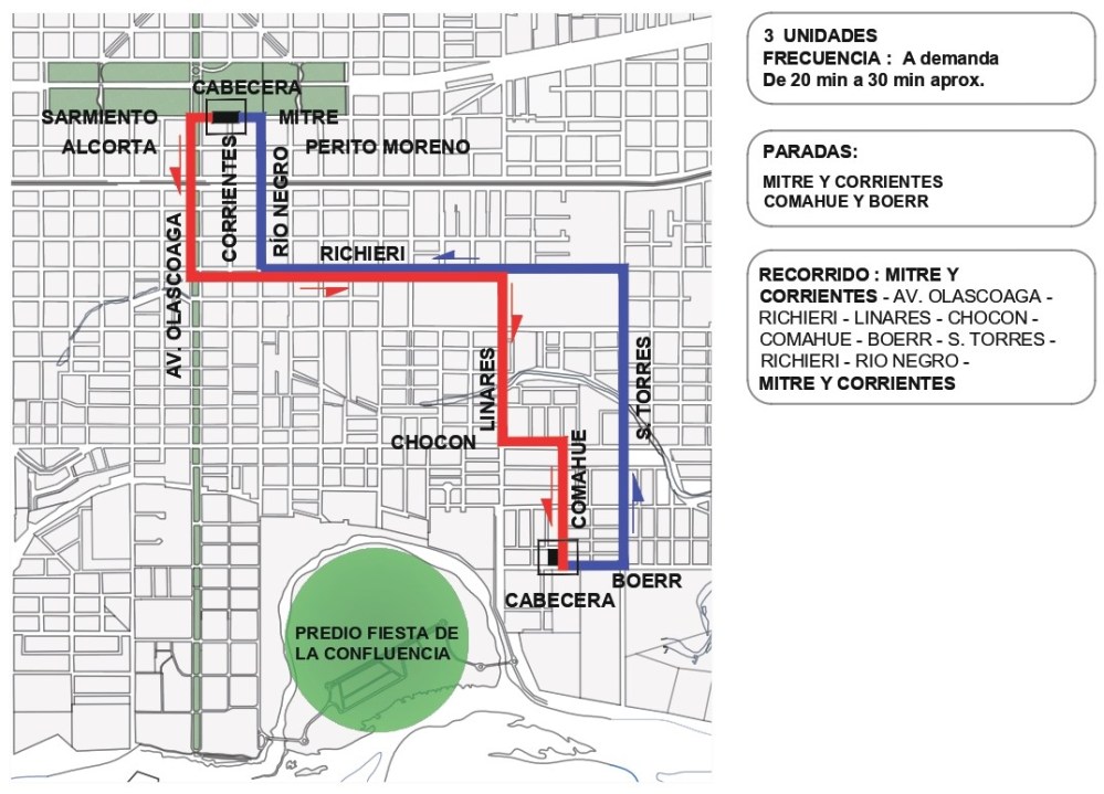 Estos colectivos gratuitos tendrán como punto de partida el Parque Central, desde las calles Mitre y Corriente, y se dirigirán al predio de la Isla 132 donde se llevará a cabo la Fiesta de la Confluencia. Únicamente los colectivos que se dirigen al predio serán gratuitos.