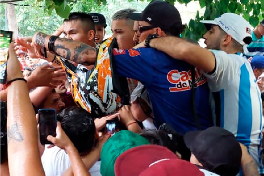 Los seguidores del artista, bajo la lluvia, lo acompañaron mientras el cantante viajaba en una moto por la avenida hacia la Isla 132. Deslizá y mirá el video: