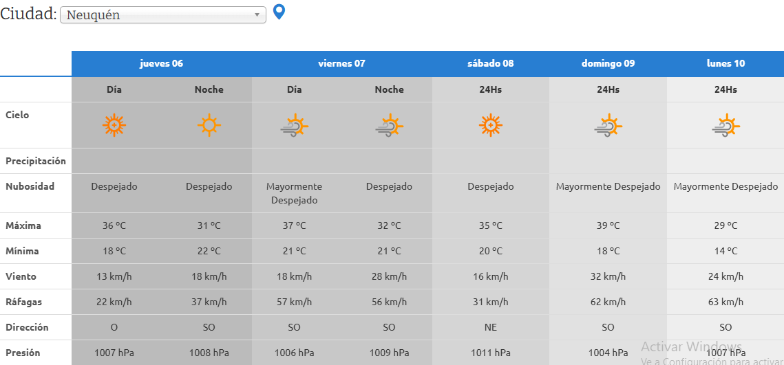 Para el viernes 7 la temperatura máxima se mantendrá en los 37°C y la mínima seguirá en los 21°C. Las ráfagas de viento aumentarán y llegarán hasta los 57 km/h.