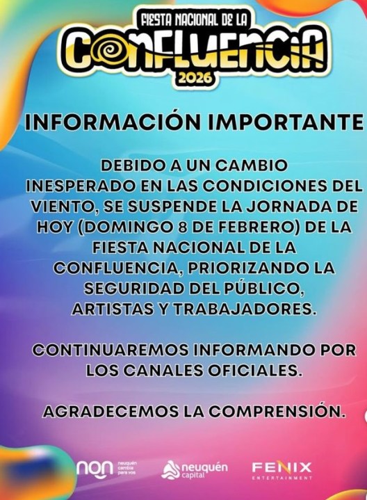 Por viento, suspensión el domingo de la Fiesta de la Confluencia 2026
