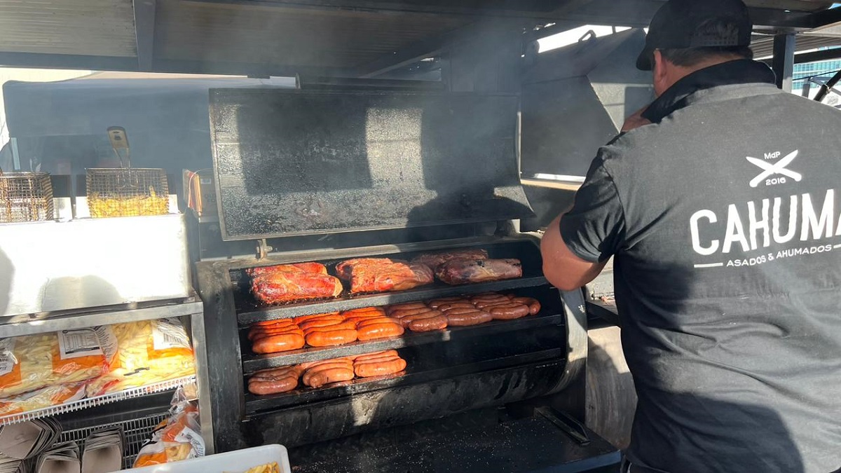 Los amantes de las carnes y la parrilla también tienen su espacio en la Fiesta de la Confluencia. Uno de los tantos puestos gastronómicos ofrece cortes a las brasas o ahumados. Te dejamos los precios del carro «Cahuma».