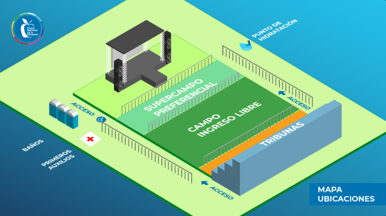 De acuerdo con la disposición del predio, el ‘supercampo preferencial’ es la mejor alternativa para estar cerca del escenario, ya que las tribunas (con asientos) se encuentran al fondo. Por su parte, el sector gratuito estará localizado en el espacio intermedio entre ambas áreas pagas.