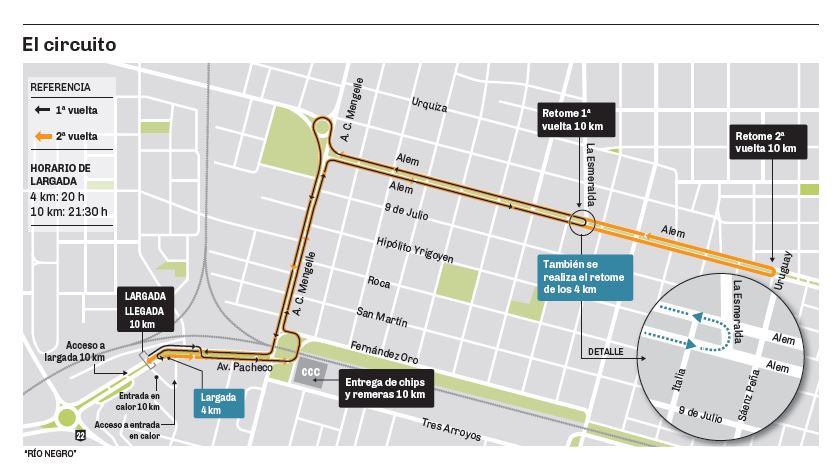 La oficial técnica internacional de World Athletics María Ignacia Vergara y el medidor internacional de carreras de calle categoría B Carlos Mocskos estuvieron en Cipolletti para verificar el tradicional recorrido de esta competencia. La prueba competitiva tiene 2 vueltas, una de 4 km y otra de 6 km. En el primer tramo se retoma sobre calle La Esmeralda y en el segundo sobre calle Uruguay. La largada y llegada está ubicada en calle Pacheco (carril norte) y Doctor A. Palacios.