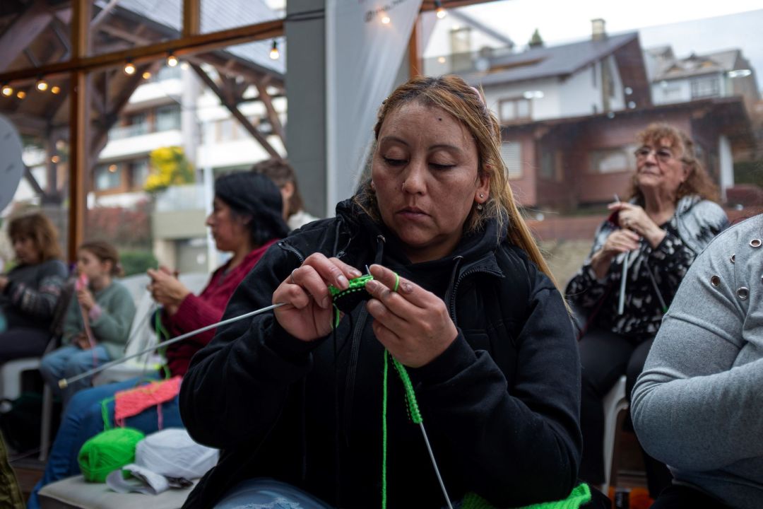 “Bienvenidas”, dijo el subsecretario de Cultura de Bariloche, Pablo Martín Iriarte, pese a que muchas de las participantes, sin ocultar su ansiedad, ya habían empezado a tejer. Y destacó: “Todo esto no sería posible sin Paola Magni, de Mía Hilados, que aportó la lana”. Con la presentación oficial, las charlas entre las participantes se cortó y la concentración invadió la sala.