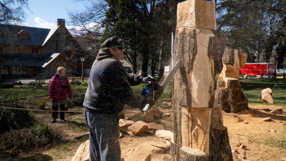 De repente, el sonido de la motosierra deja de escucharse. Dos escultores se acercan hasta una pareja de turistas que observa curiosa los trabajos detrás de la valla y comienza un diálogo. A pocos metros, otros dos escultores analizan con detalle un rollizo de madera que, poco a poco, empieza a tomar forma. “Está quedando lindo”, opina uno, con el ceño fruncido y un gesto de aceptación; mientras el otro saca aserrín de una de las aberturas de la escultura. El encendido de la motosierra marca que la tarea se reanuda.