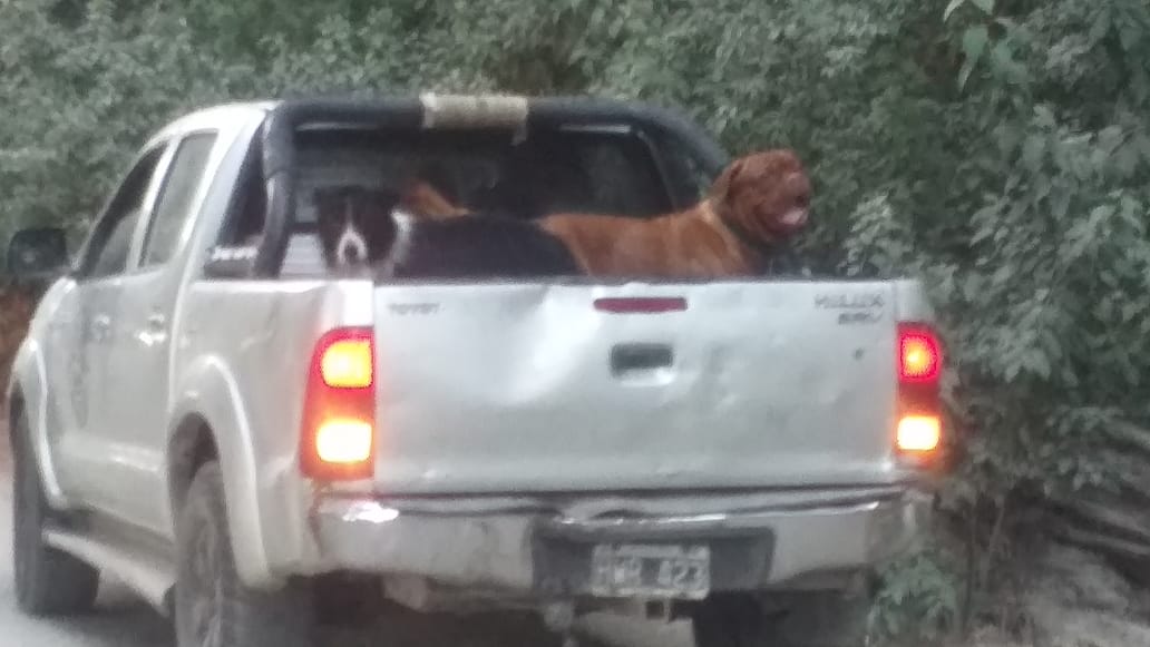 Una camioneta transporta a dos perros en la zona de lago Gutiérrez.