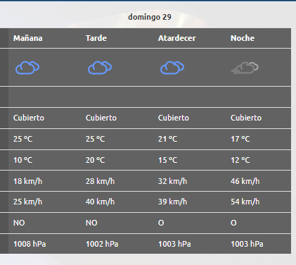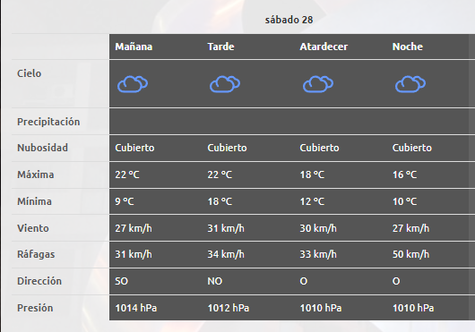 Sobre el viento, desde la AIC, adelantaron que será de 40 km/h por la tarde. Durante la noche la ráfagas alcanzarán los 50 km/h.