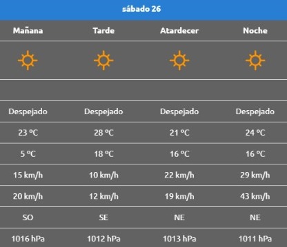 En el caso de la capital neuquina, si bien la máxima llegará hasta 28°C durante la tarde, lo hará luego de remontar unos bajos 6°C previstos para la mañana del sábado.