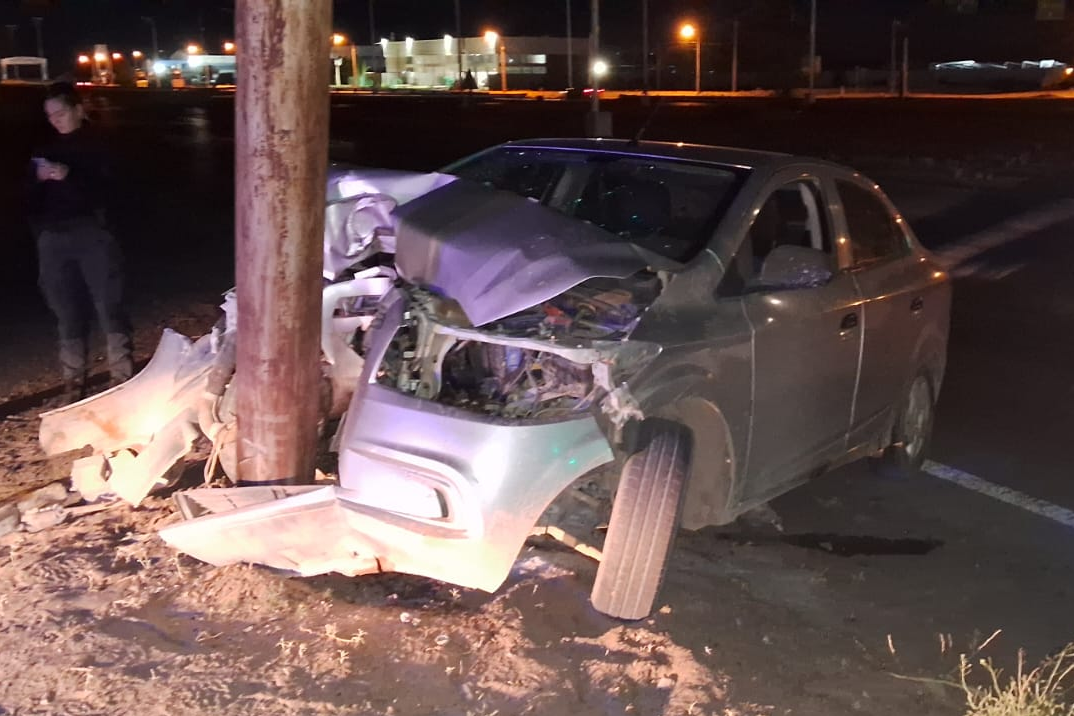 El hecho tuvo lugar cuando viajaban en dirección a Neuquén y, al pasar por la rotonda ubicada frente a la cerámica, chocaron contra un poste de luz.