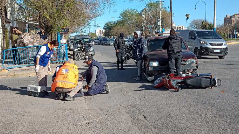 Fuerte choque en una rotonda dejó un motociclista lesionado en Roca