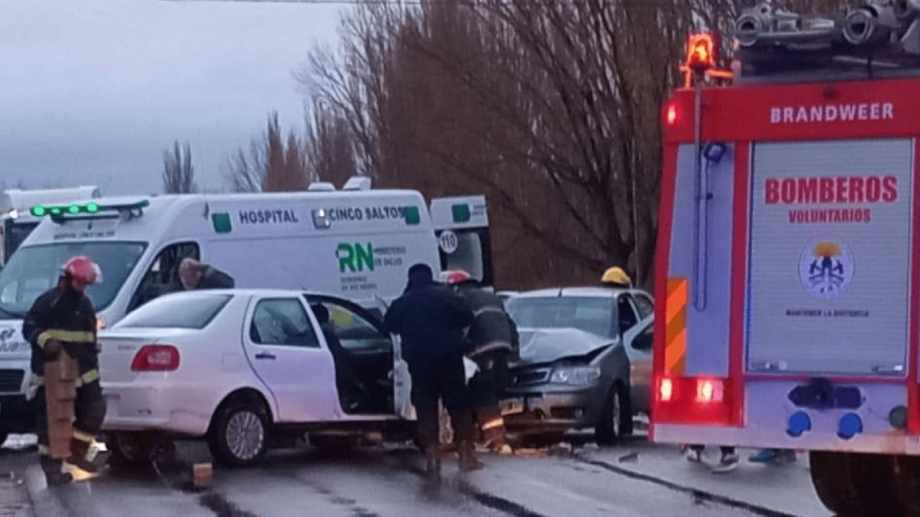 En la mañana de este sábado, alrededor de las 8:20, dos vehículos protagonizaron un choque frontal en Ruta 151, en Cinco Saltos. Por consecuencia del fuerte impacto, tres personas fueron trasladadas al hospital local. Qué se sabe.
