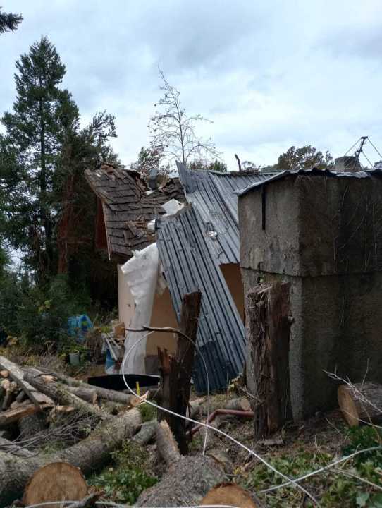 Fuertes vientos en Bariloche: cayó un árbol en Villa Tacul y destrozó una casa