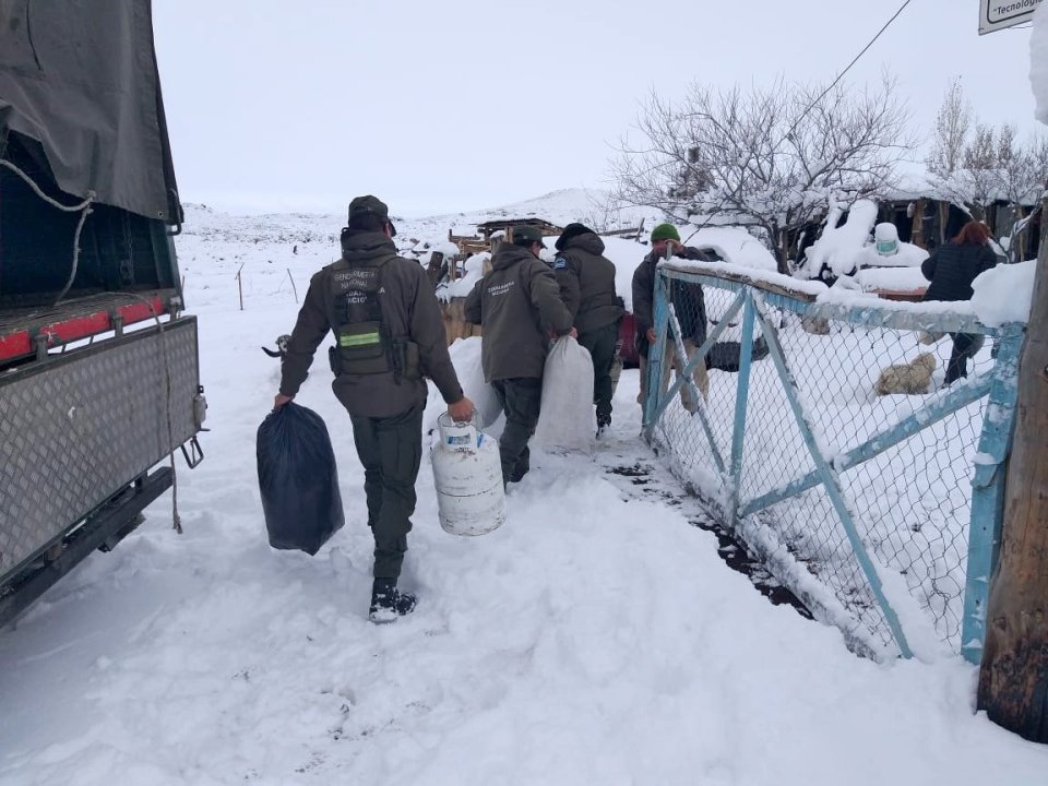 El Escuadrón 31 de Las Lajas “Gendarme Juan Carlos Treppo” debió brindar seguridad vial con la asistencia de cadenas para los neumáticos y el acompañamiento hasta una zona segura a familias que transitaban.