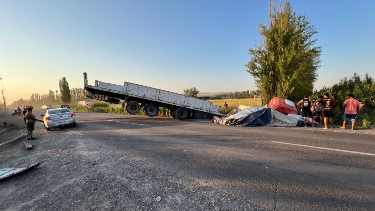 El siniestro ocurrió a la altura de Guerrico. entre Roca y Allen. Durante varios minutos, el tránsito en la Ruta Chica estuvo interrumpido. Parte del camión terminó adentro de un desagüe.