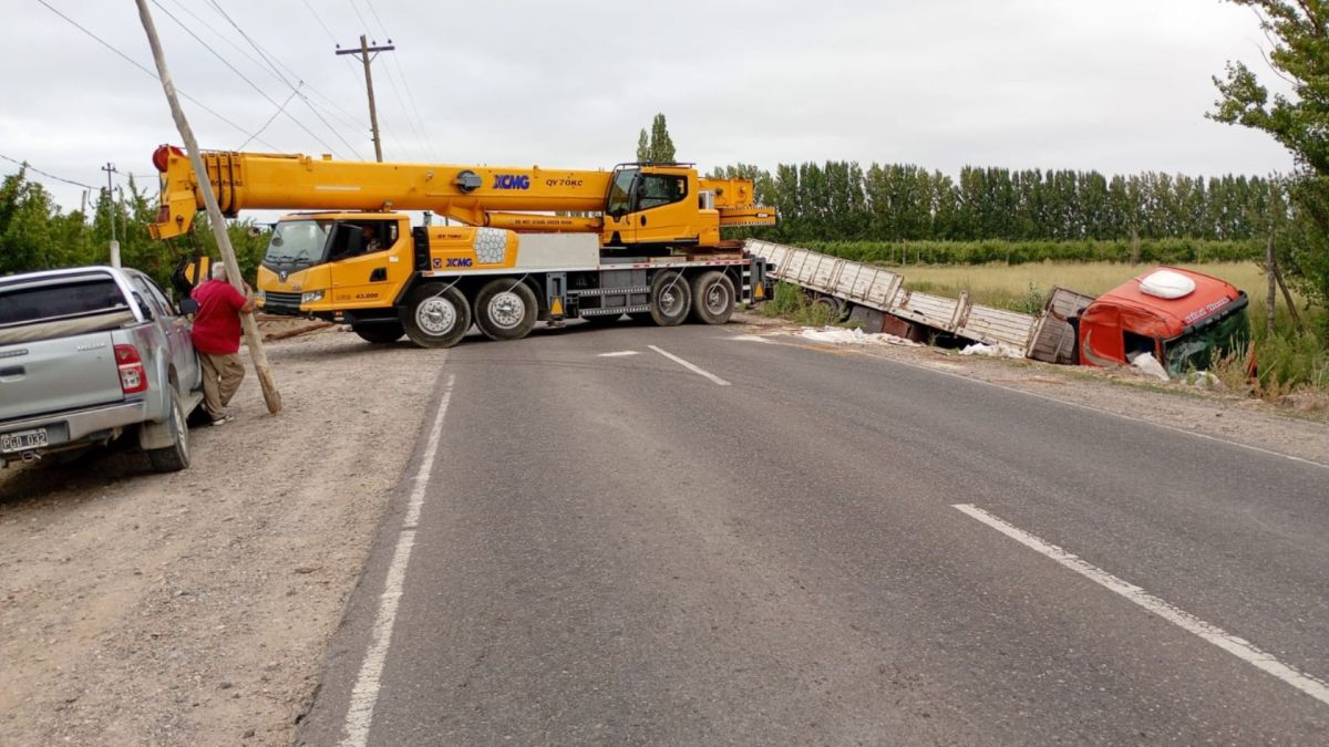 Un camión con semirremolque volcó en la Ruta Provincial 65, también conocida como la Ruta Chica en el Alto Valle, y generó caos en el tránsito debido a que cortó totalmente el paso. Por el siniestro se montó un gran operativo que se retomó este jueves para extraerlo definitivamente del lugar.