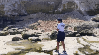 El accidente ocurrió cuando la pareja de turistas descendió a la playa y se ubicó justo debajo del acantilado. Posteriormente, se dirigieron al mar, y fue en ese momento cuando ocurrió el desprendimiento de rocas.