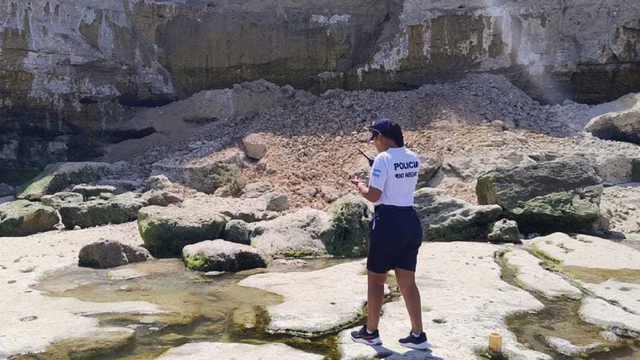 «Afortunadamente no hay ninguna persona lesionada», ya que no había nadie cerca, detalló el oficial. En estos momento, se encuentra trabajando en el lugar personal policial y de guardavidas, para delimitar el área y evitar que las personas se acerquen, por precaución.