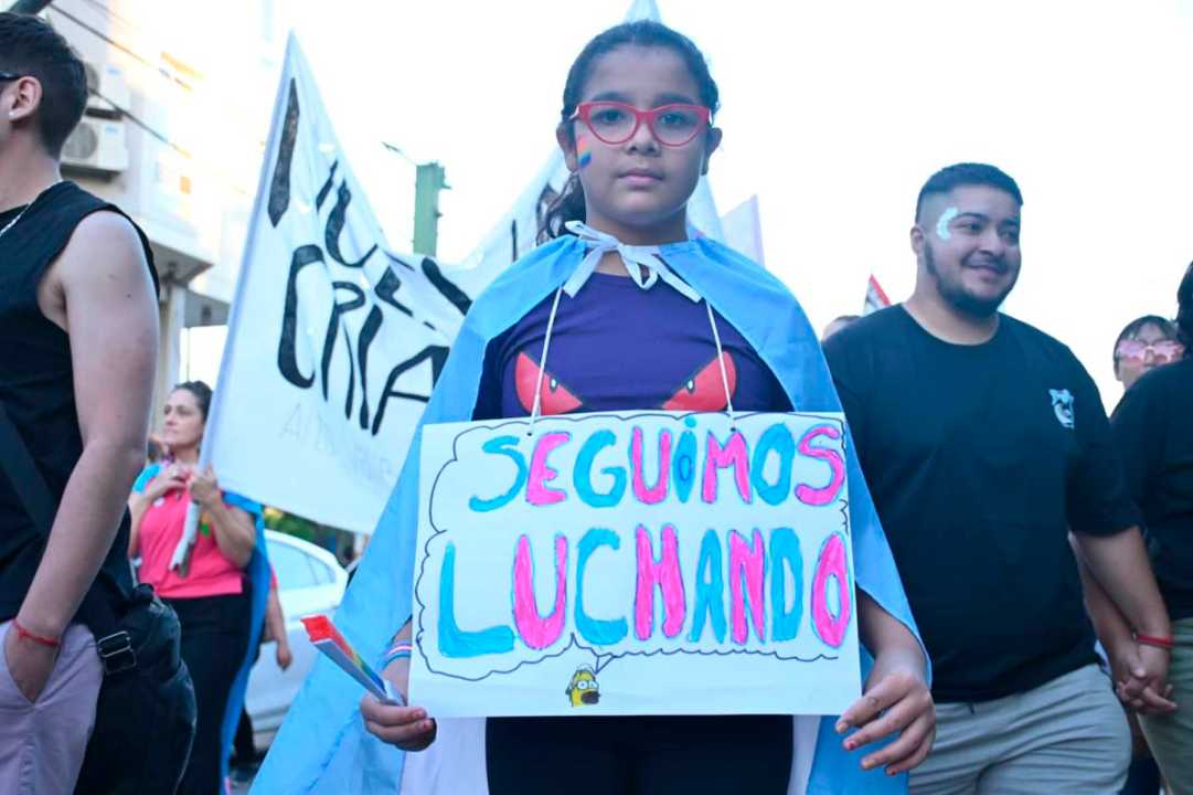 Si bien el brillo, los colores y la música son la forma que se elige año a año para celebrar el encuentro y la contención entre quienes integran el colectivo, sus familias y amistades, lo cierto es que la movilización y el reclamo que sostienen va mucho más allá. El pedido por la sanción de la Ley Integral Trans y los principios que esta normativa busca, como el trato digno, equitativo, sin miedo a los maltratos o a los abusos, fue uno de los puntos que se reivindicó Sil Bonet, desde la organización.