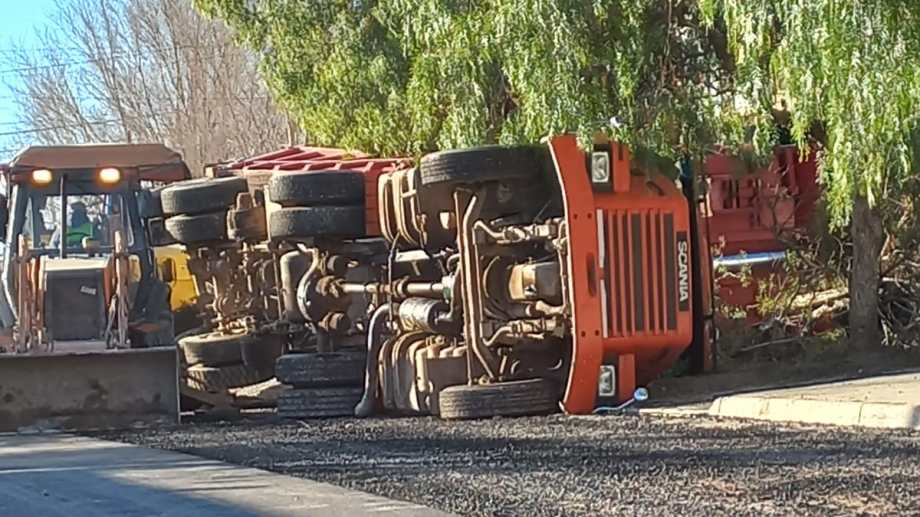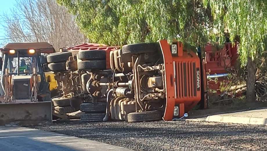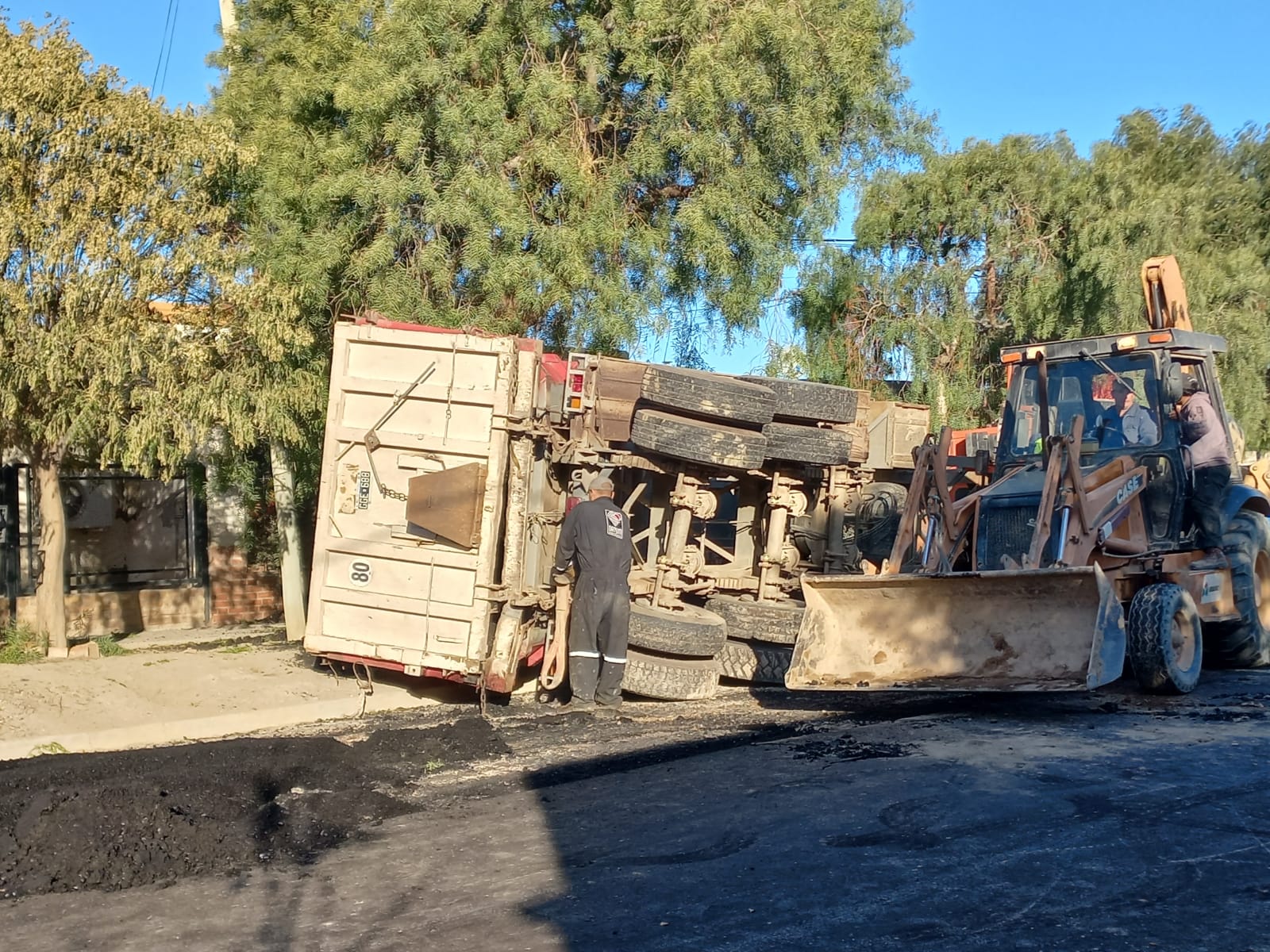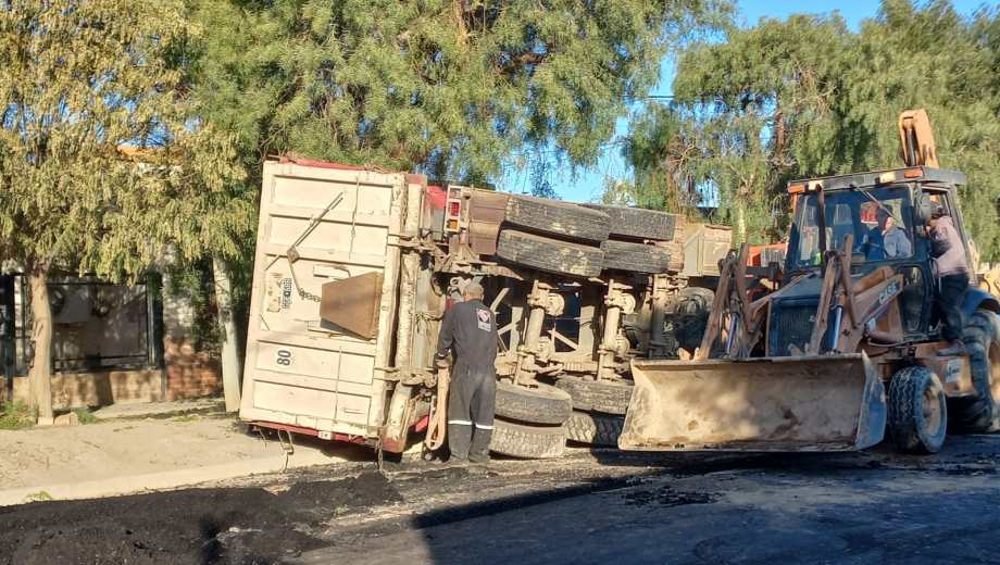 Hacían el asfalto y volcó un camión sobre la vereda, en un barrio de Roca