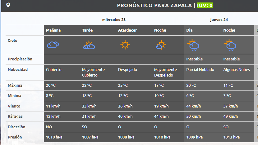 En Zapala y el centro neuquino, el viento iniciará este miércoles por la tarde con ráfagas de 44 km/h. El jueves será una jornada inestable marcada por las lluvias durante todo el día.