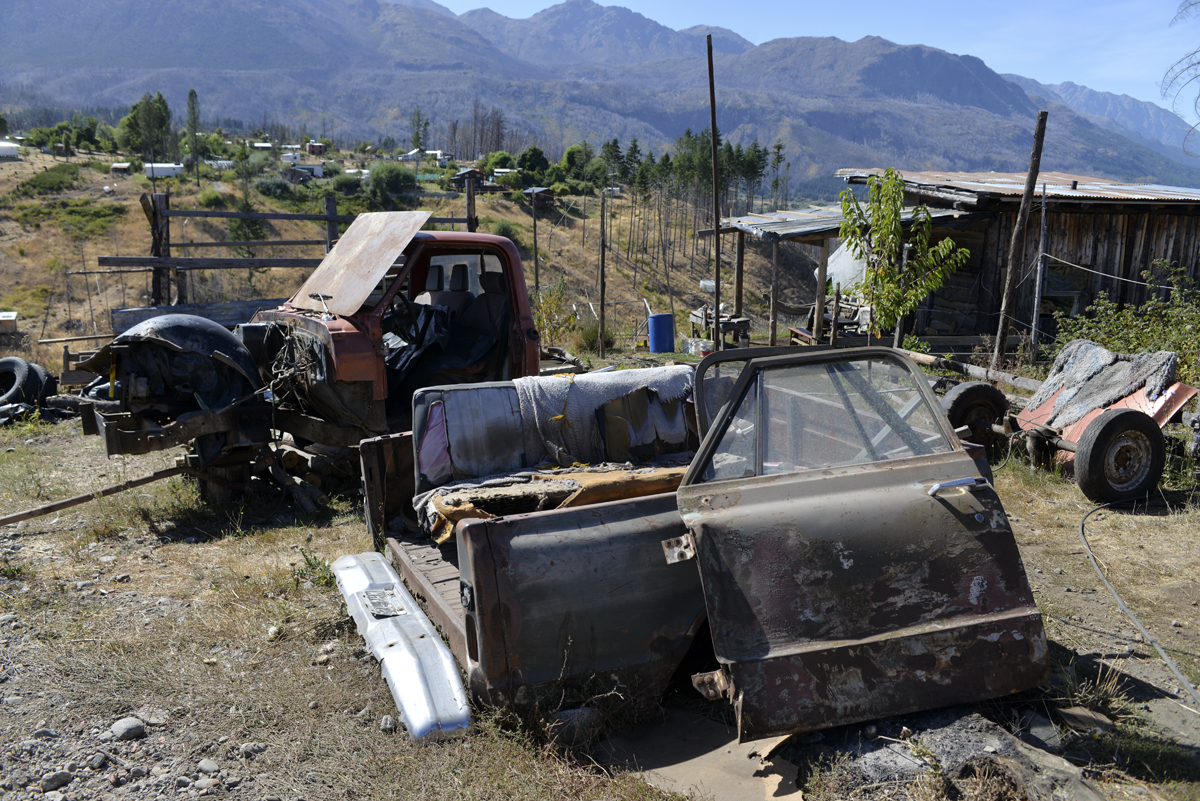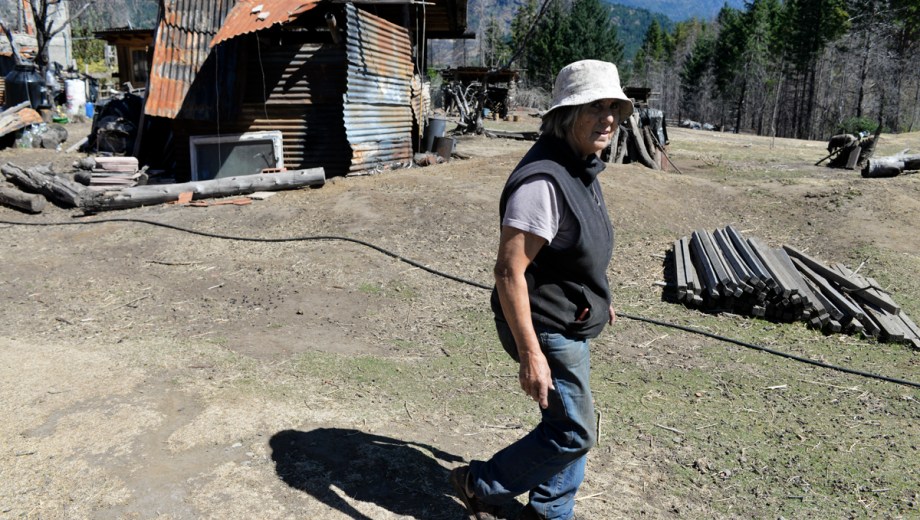 Marcelo Cárdenas, logró reconstruir su taller y su casa con ayuda de amigos a la altura del kilómetro 1905 de la Ruta 40. “Fue cuestión de horas todo. Al haber mucho viento se juntó todo. Ardía toda la cordillera entera, era una brasa gigante, una locura, parecía que iba a bajar al pueblo, a El Hoyo, la gente se quería ir”, recordó. En su retina todavía queda el paisaje anterior: “Había mucha vegetación, estaba lleno de pinos, no se veía el Piltriquitrón desde mi casa, recién tenía sol al mediodía, pero el incendio se chupó todo, se pueden ver los pinos quemados. Yo foresté, planté árboles para recuperar un poco”, relató en medio de su terreno, ubicado en la zona alta de una barranca que cae a pocos metros y genera una vista panorámica donde se ven desperdigadas algunas casas, resto de pinos quemados y una un terreno despejado, alejado de la imagen de la “cortina de pinos” que tiene en su memoria Marcelo.