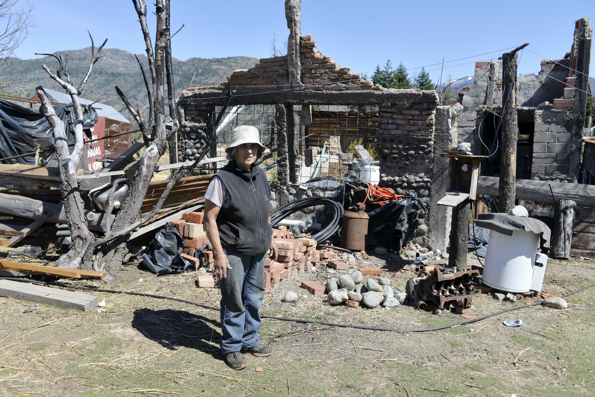“De las cinco de la tarde a las ocho, ya no había nada más. Había mucho viento, remolinos, ese día”, resume Rosalía Mascuta, una mujer de 74 años que volvió a levantar su pequeña despensa de ladrillos en la zona del Lote 18, a escasos metros de la Ruta 40. En su terreno todavía abundan los restos de lo que el fuego destrozó: su casa en ruinas, heladera, lavarropas, freezer calcinados, los camiones de su hijo que también el incendio dañó de manera total. Al fondo, los esqueletos de un pinar totalmente carbonizado.