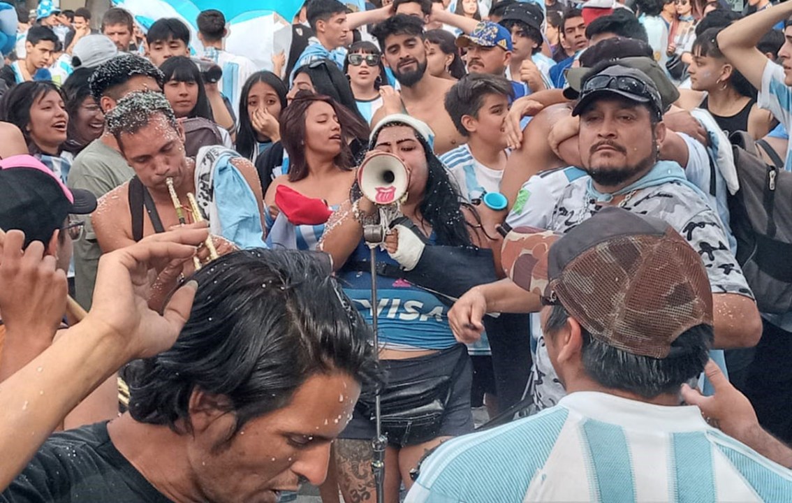 Con la alegría como estandarte, tocaron a morir. No solo los once de la selección dejaron todo en la cancha. Hubo otro par de muchachos que como históricos embajadores de “La 12”, transpiraron la camiseta en los festejos mundialistas de Avenida Roca y Tucumán.