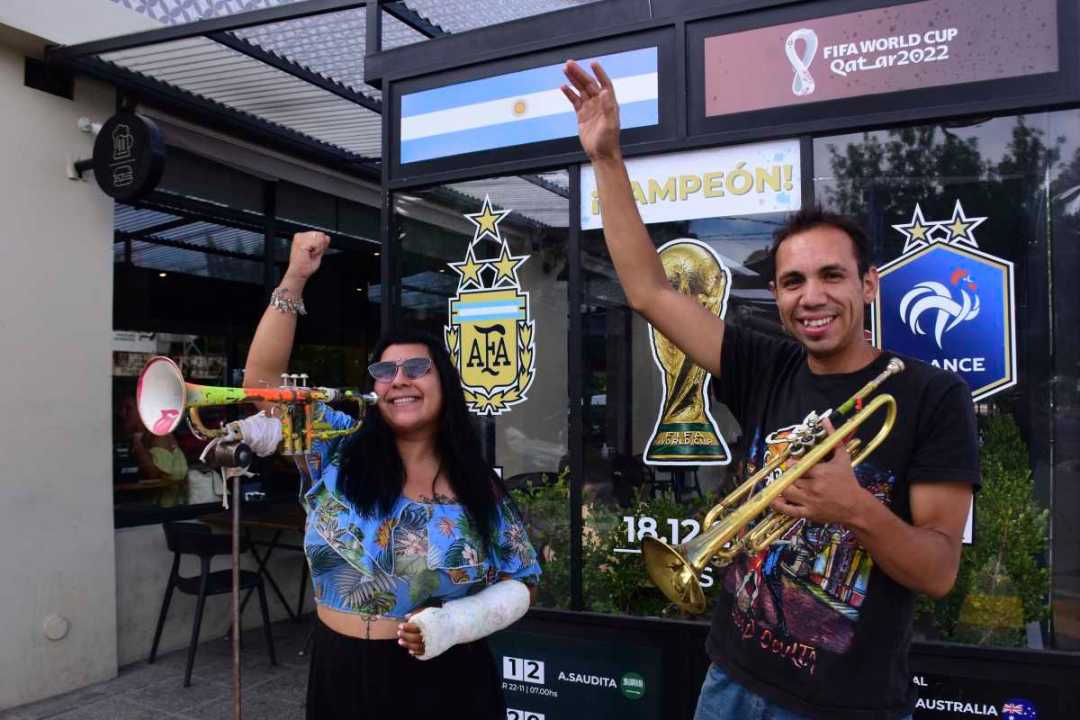 Hinchas de corazón y trompeta: la pareja de Roca que alentó y fue furor en los festejos del Mundial