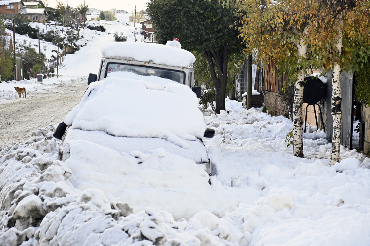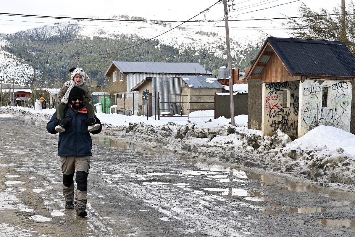 A unos pocos metros, sobre la calle José Luckman, Fernando Piñero Da Silva despejaba la nieve de la entrada de su casa. El trabajo era arduo porque la nieve ya estaba compacta. «Nevó tanto que si no es indispensable salir, no conviene moverse. Pero mi señora está embarazada así que por las dudas, tratamos de tener el ingreso limpio para poder sacar el auto. De todos modos, las calles están intransitables llenas de pozos con agua», dijo el muchacho señalando un auto cuyo conductor intentaba sortear los pozos, como podía, tratando, a su vez, de no mojar a un hombre que caminaba por la calle llevando a una pequeña niña sobre sus hombros.