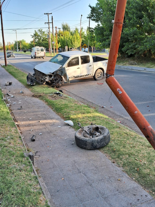 Impactante accidente en Cipolletti: perdió el control de su camioneta y chocó un poste de luz
