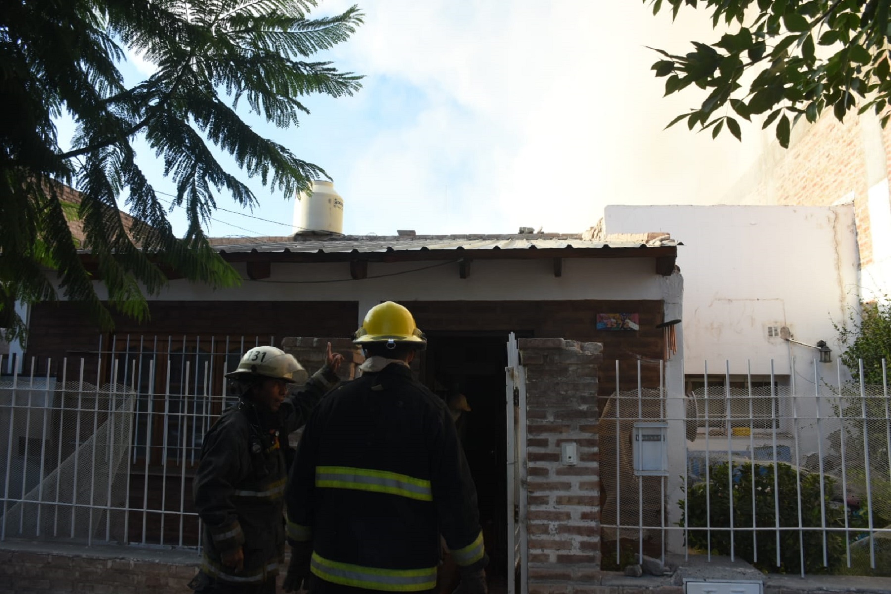 Al arribar constataron que la gran columna de humo correspondía precisamente al fuego que estaba afectando la totalidad de un quincho y la habitación de una casa familiar.