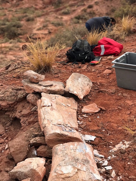 Los restos fueron encontrados en un cañadón seco ubicado a tres kilómetros del casco urbano. Esperan rescatar más material fósil del dinosaurio más grande hallado en estas tierras.