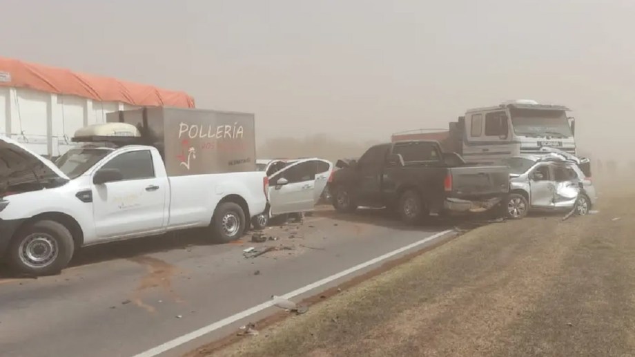 Impresionante choque múltiple en medio del temporal de viento, en Córdoba: un muerto y 17 heridos