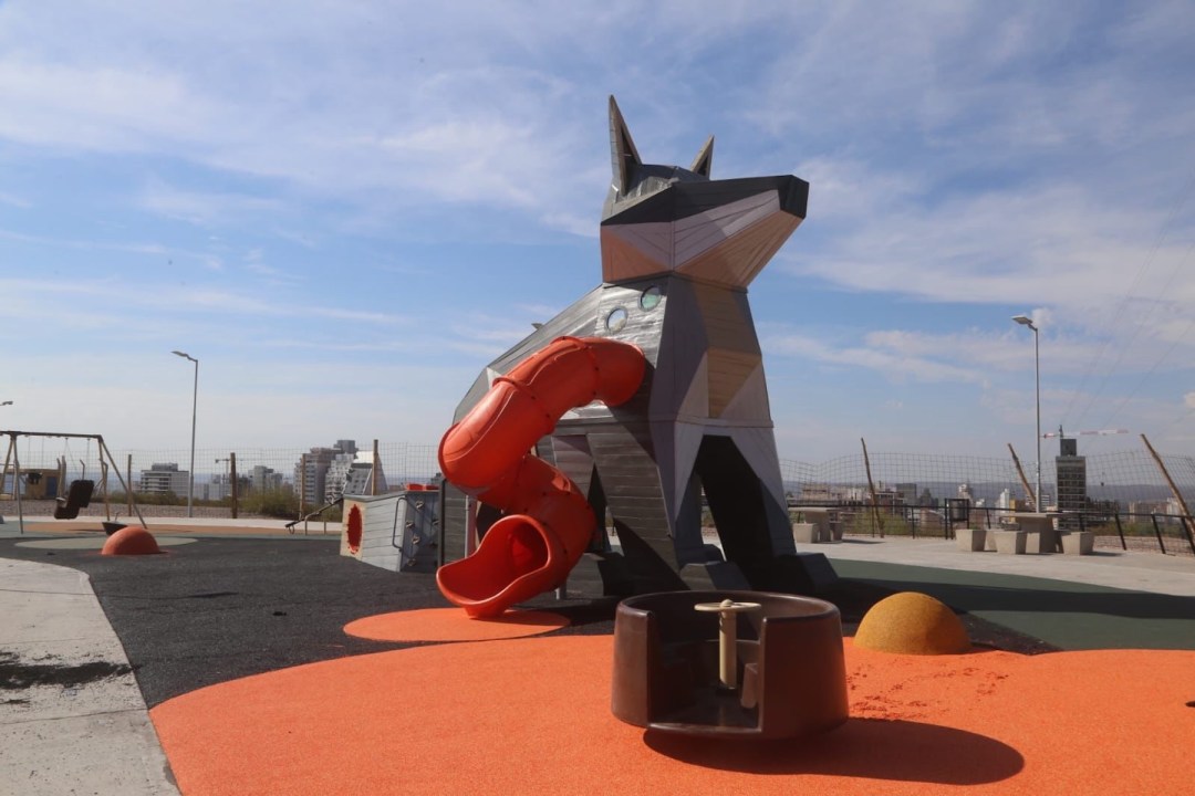 El circuito recreativo del Balcón del Valle incorporó desde este martes una nueva parada obligada para las familias. Se trata de un parque temático que tiene como eje central a «Kuyen», una estructura de juego (mangrullo) con forma de zorro de más de 5 metros de altura, inspirada en la fauna autóctona de la barda.
