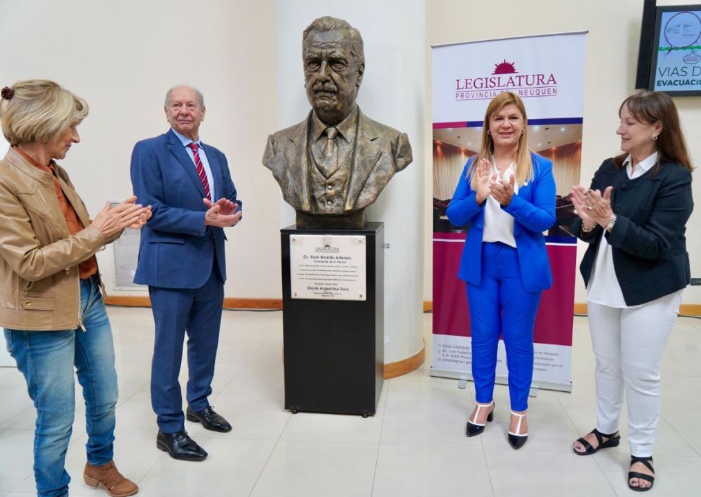 El proyecto para colocar la figura del expresidente de la Nación, fue impulsado por el diputado provincial César Gass, quien destacó en su discurso que “Alfonsín asumió en el contexto de un país devastado y humillado, por eso se dio a la tarea de reconstruir las instituciones, unir al pueblo, y propiciar el Juicio a las Juntas. Su propuesta de la ética de la responsabilidad en el discurso de Parque Norte mostró a un estadista adelantado a los tiempos y que recién hoy se lo está interpretando y añorando. Nunca más los neuquinos vieron pasar al tren que en lugar de pasajeros llevaba ataúdes, y se dio a la tarea aprobada por Ley de lograr el tratado de paz y amistad con Chile”.