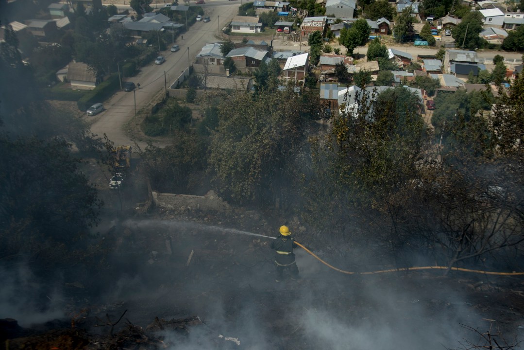 Las llamas habían adquirido varios metros de altura y el fuego avanzaba impulsado por las ráfagas de casi 60 kilómetros en la hora. “Por ahora, la cabeza del incendio está descontrolada y se pide apoyo de medios aéreos”, explicó Báez. Describió que el incendio estaba “muy cerca de las casas”.