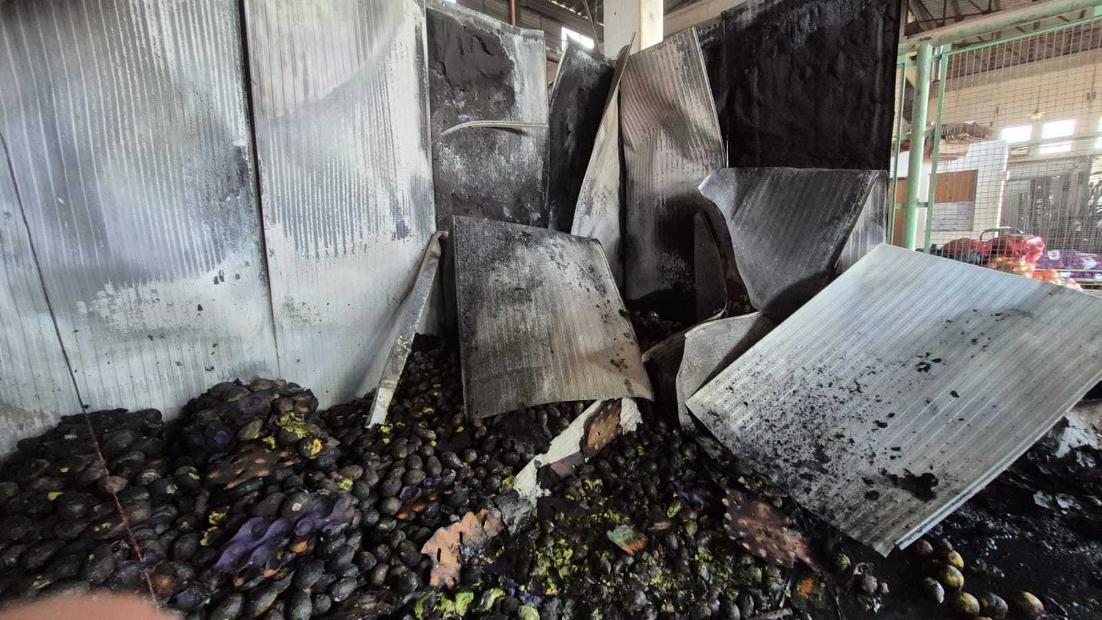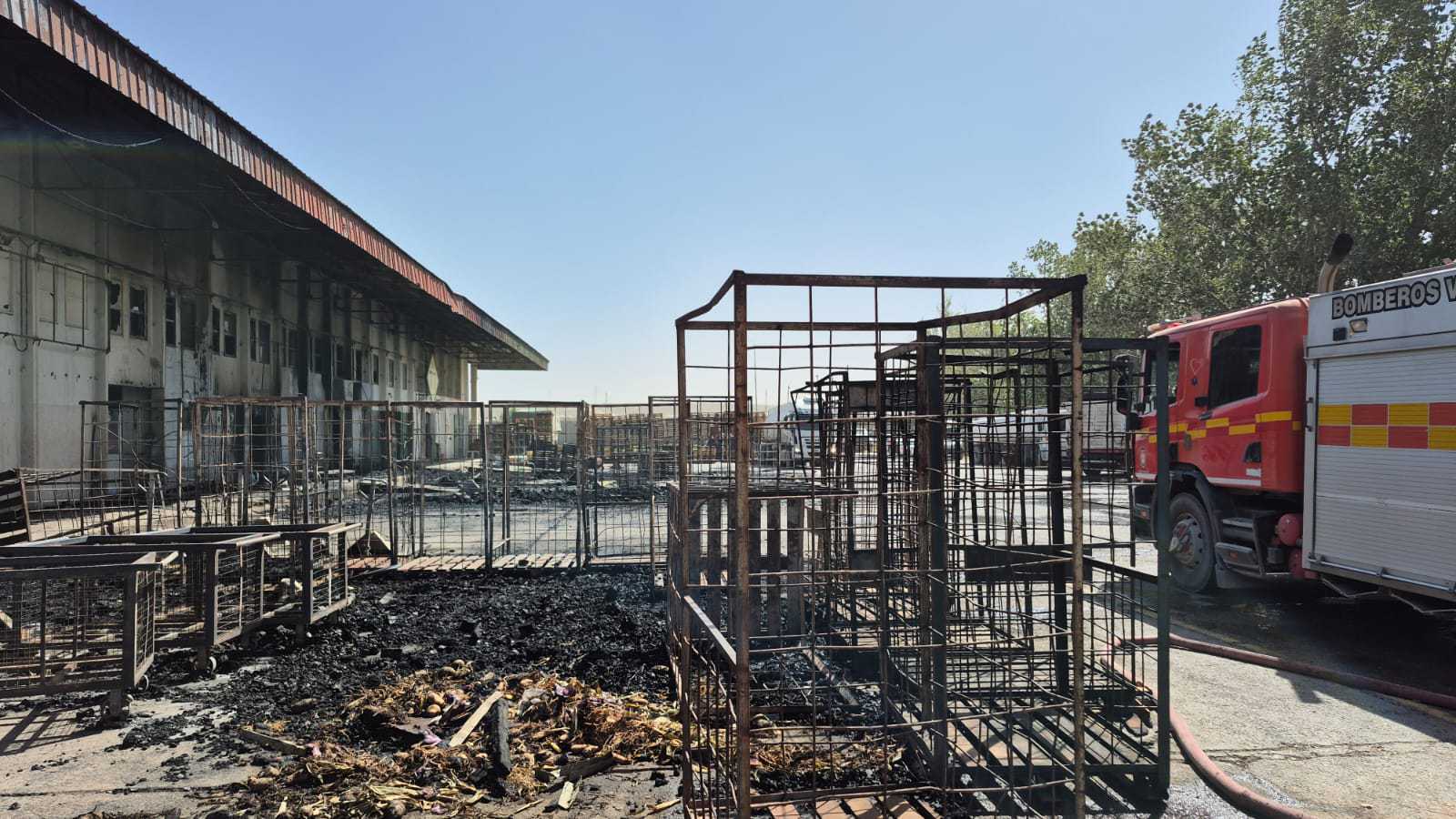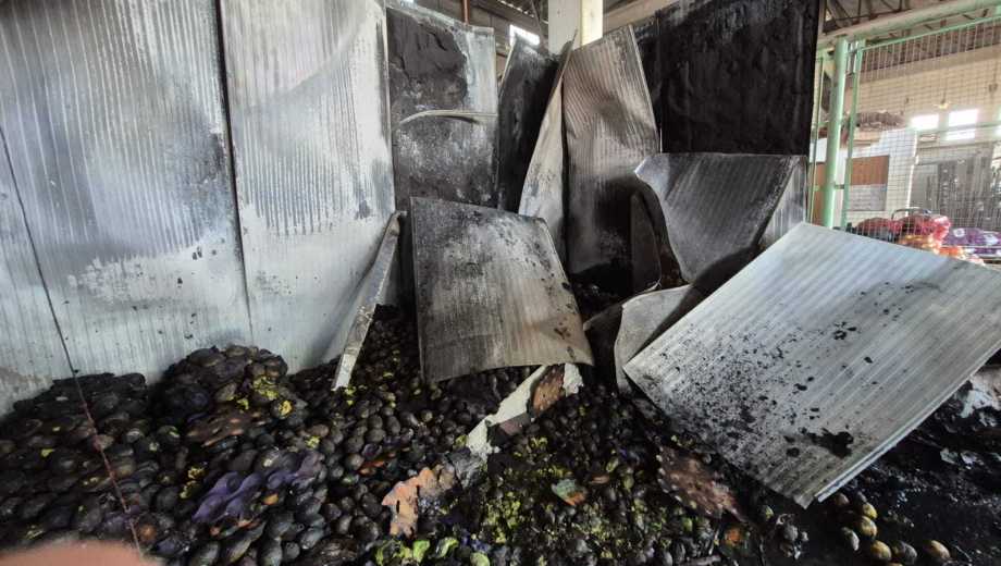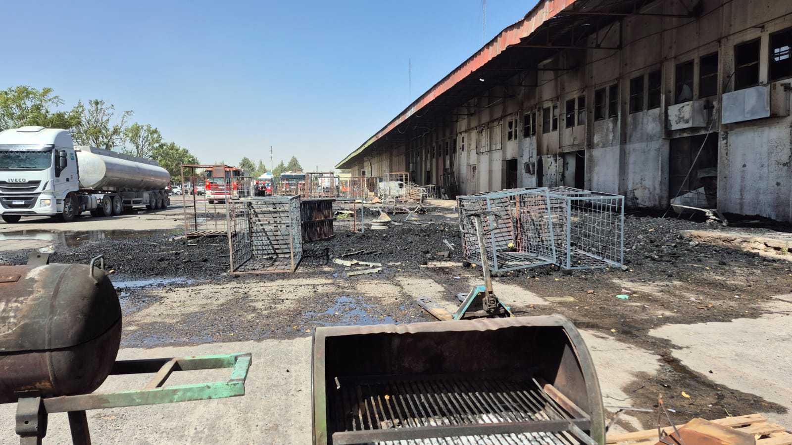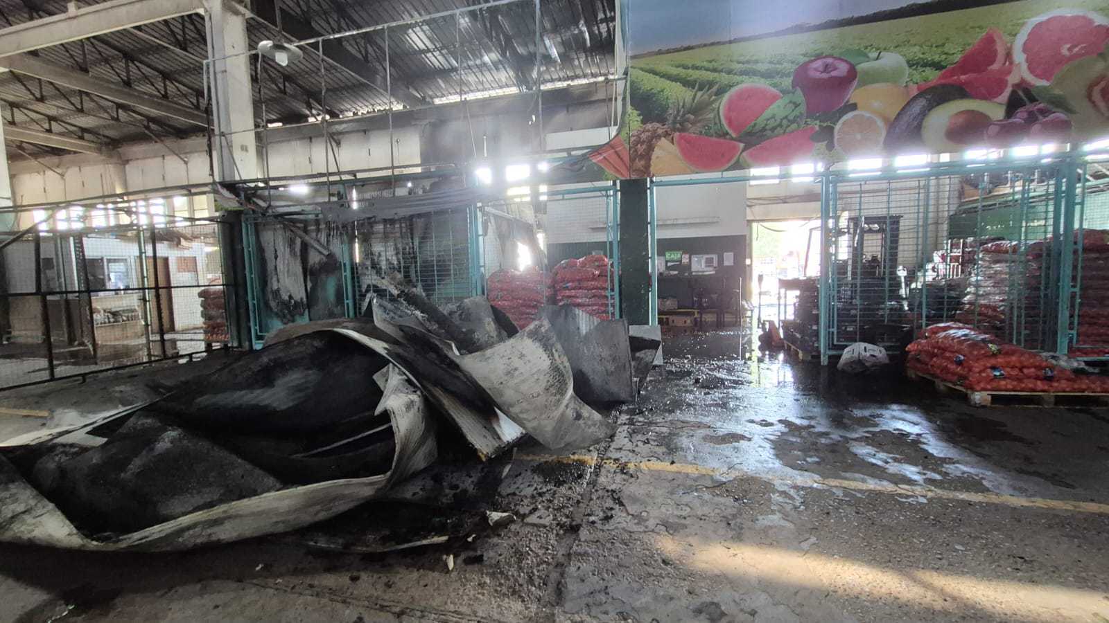 Puestos de productores dañados por el fuego en el Mercado Concentrador de Neuquén