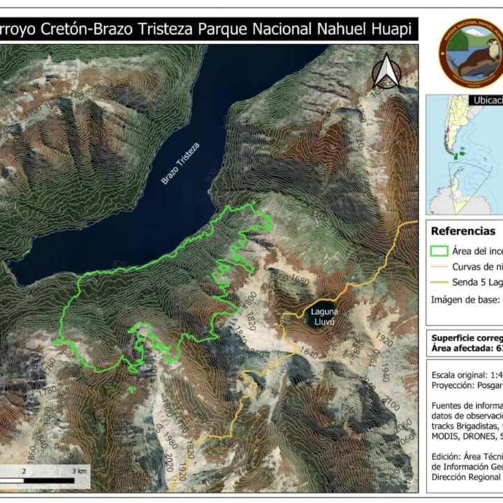 El incendio que afecta al brazo Tristeza del parque nacional Nahuel Huapi ya arrasó con 628 hectáreas. Los operativos se inician a partir de las 6 horas, y los medios aéreos comienzan a operar desde las 10 horas. Participan cerca de 70 combatientes de Parques Nacionales, Servicio de Prevención y Lucha contra Incendios Forestales de Río Negro (SPLIF) y el Sistema Provincial de Manejo del Fuego de Neuquén. Además de más de 25 agentes del Parque entre técnicos, logísticos y administrativos.