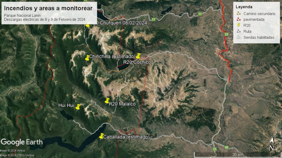 Todos los focos se encuentran en la zona norte del Parque Nacional Lanín. Para la zona, hoy se pronostica un ascenso de la temperatura y un viento leve del sector este. Desde que comenzó el incendio brigadistas trabajan en el terreno, que desde Parque Nacional Lanín lo describen de alta complejidad, por la abundancia de material rodante de árboles de gran tamaño. Por eso, el trabajo que realizan es con herramientas de mano, tándem de motobombas con la colaboración del medio aéreo.