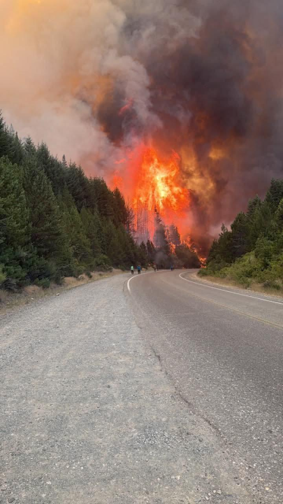 Debido a la aproximación del fuego sobre la Ruta 40, las autoridades nacionales y municipales cortaron hasta nuevo aviso el tramo que une Epuyén y El Hoyo.