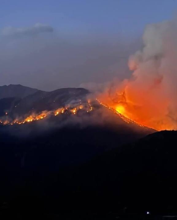 Este jueves, un incendio forestal de grandes magnitudes se desató en el circuito troncal del Cajón del Azul, en el Bolsón. Hay múltiples focos activos, y la situación es aún más crítica debido al fuerte viento que propaga las llamas rápidamente.