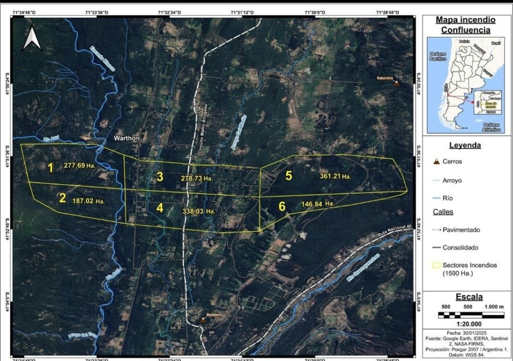 Desde el Gobierno de Río Negro informaron que el jueves, se detectó una columna de humo en el sector Loma de los Piches, «próximo a la confluencia de los ríos Blanco y Azul».