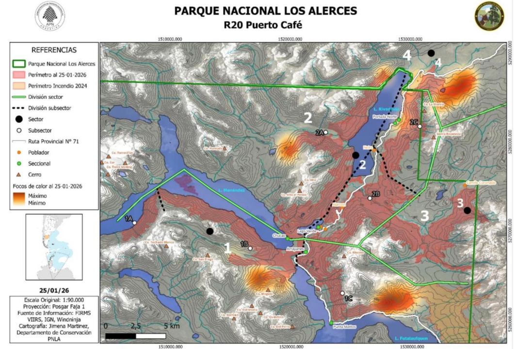Desde Parques Nacionales alertaron que, producto del clima, se reavivó la propagación de focos en las áreas del Cerro Riscoso y Quebrada del León, situación que generó el repliegue preventivo de brigadistas de los sectores más comprometidos.
