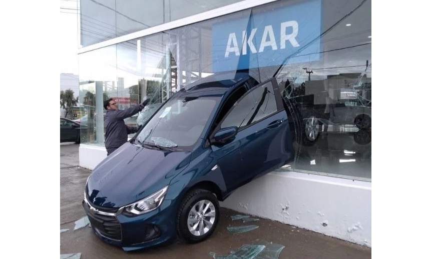 Insólito accidente en Chubut: acomodaba un auto en la concesionaria pero lo chocó contra el ventanal