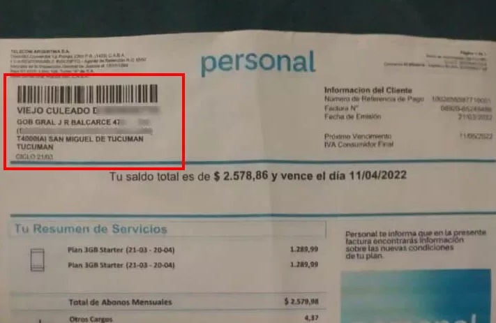 Indignado, un vecino de Yerba Buena, en Tucumán, denunció la insólita manera en que lo denominaron en una factura de la empresa Telecom – Personal. Por el hecho, aún no hubo respuesta de la firma y «ni siquiera ofreció disculpas», declaró el afectado.
